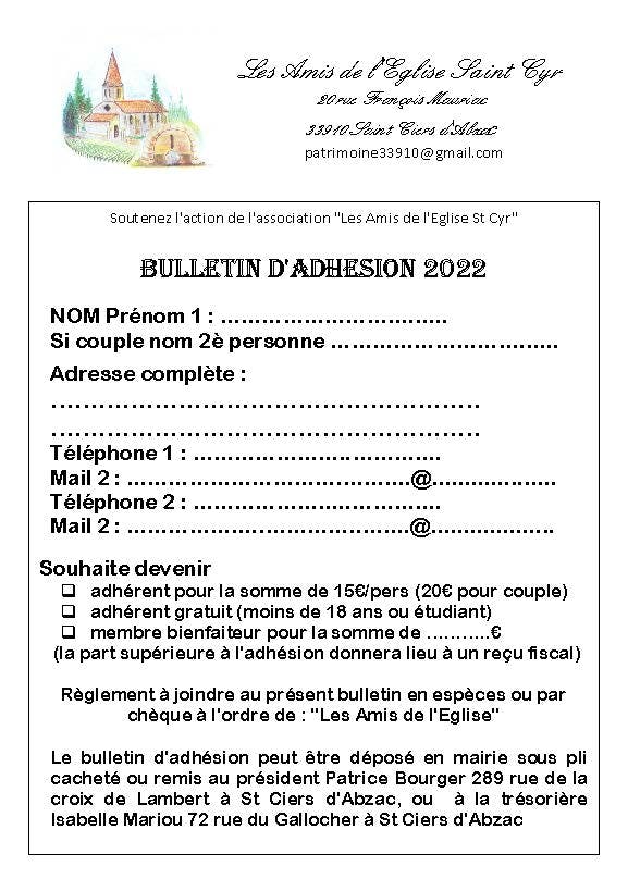 Patrice Bourger, le président, a remercié l'ensemble des participants de leur investissement pour l'association et a présenté le bilan moral de l'année 2021. Il a ensuite passé la parole à la trésorière pour le bilan financier qui présente un bénéfice de 1800€. Après discussion concernant l'affectation du résultat, à l'unanimité il est décidé de continuer à provisionner une réserve pour le jour où la commune procèdera à la réfection de la toiture (un devis récent évalue la dépense à plus de 77000€) afin de participer si besoin au financement de tout ou partie du reste à charge de la commune.